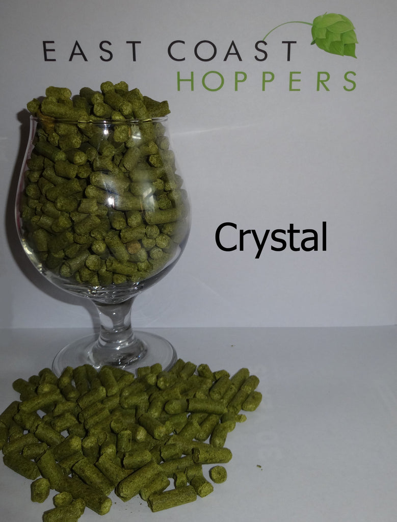 Crystal was bred in 1983 by the USDA, Crystal is a triploid aroma-type cultivar from Hallertau Mittelfrüh, Cascade, Brewer's Gold and Early Green. It is primarily grown in Oregon and has become increasingly popular among craft brewers due to its versatility in a variety of beverage styles.