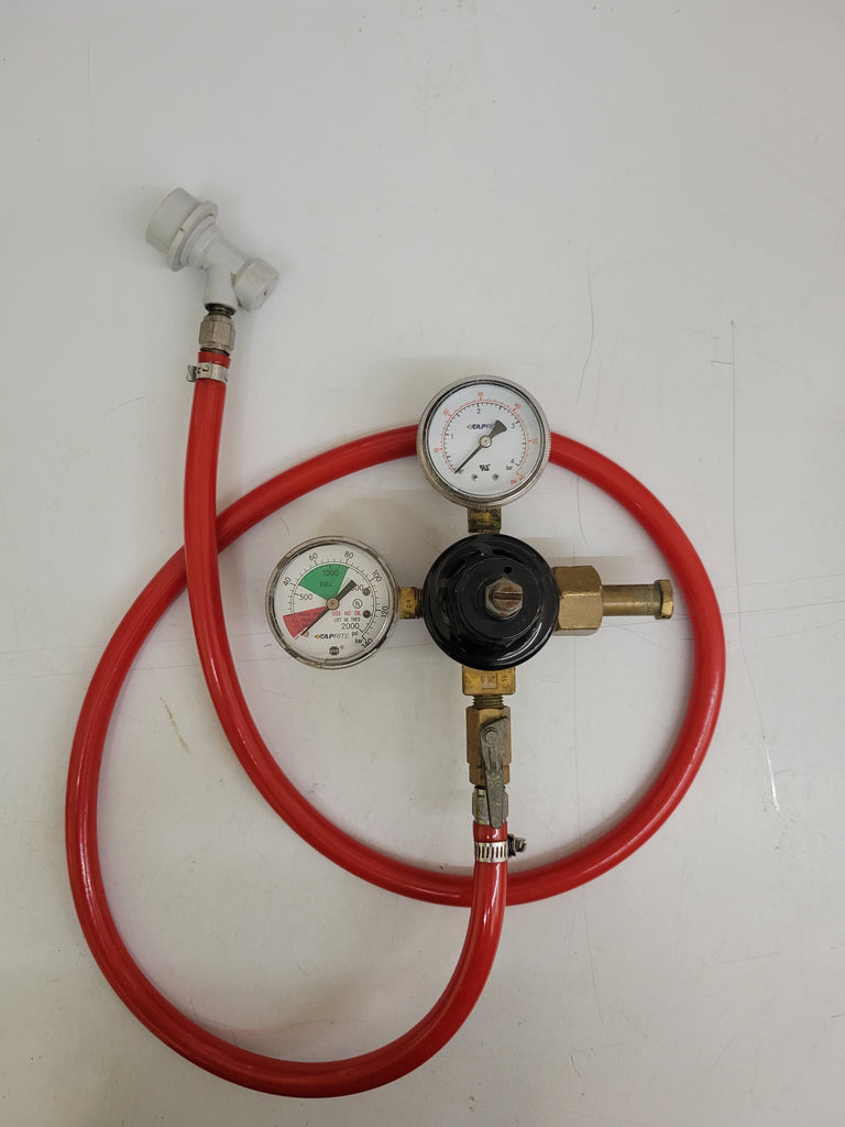 This is a gently used but fully working primary CO2 regulator. It comes with 4 feet of ultraflex tubing and a ball lock gas disconnect.